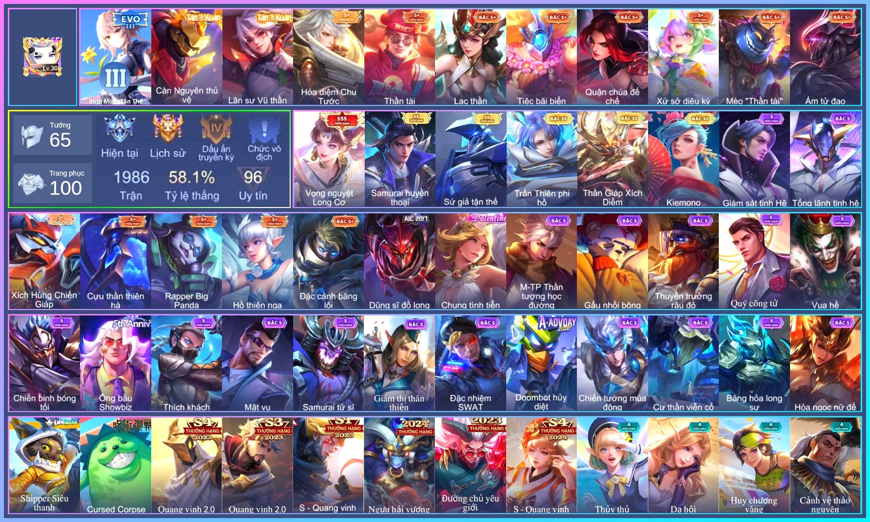 MỤC: MUA ACC LIÊN QUÂN VIP: SKIN SSS, ANIME, CỤC VÀNG, MÁC THÁCH ĐẤU