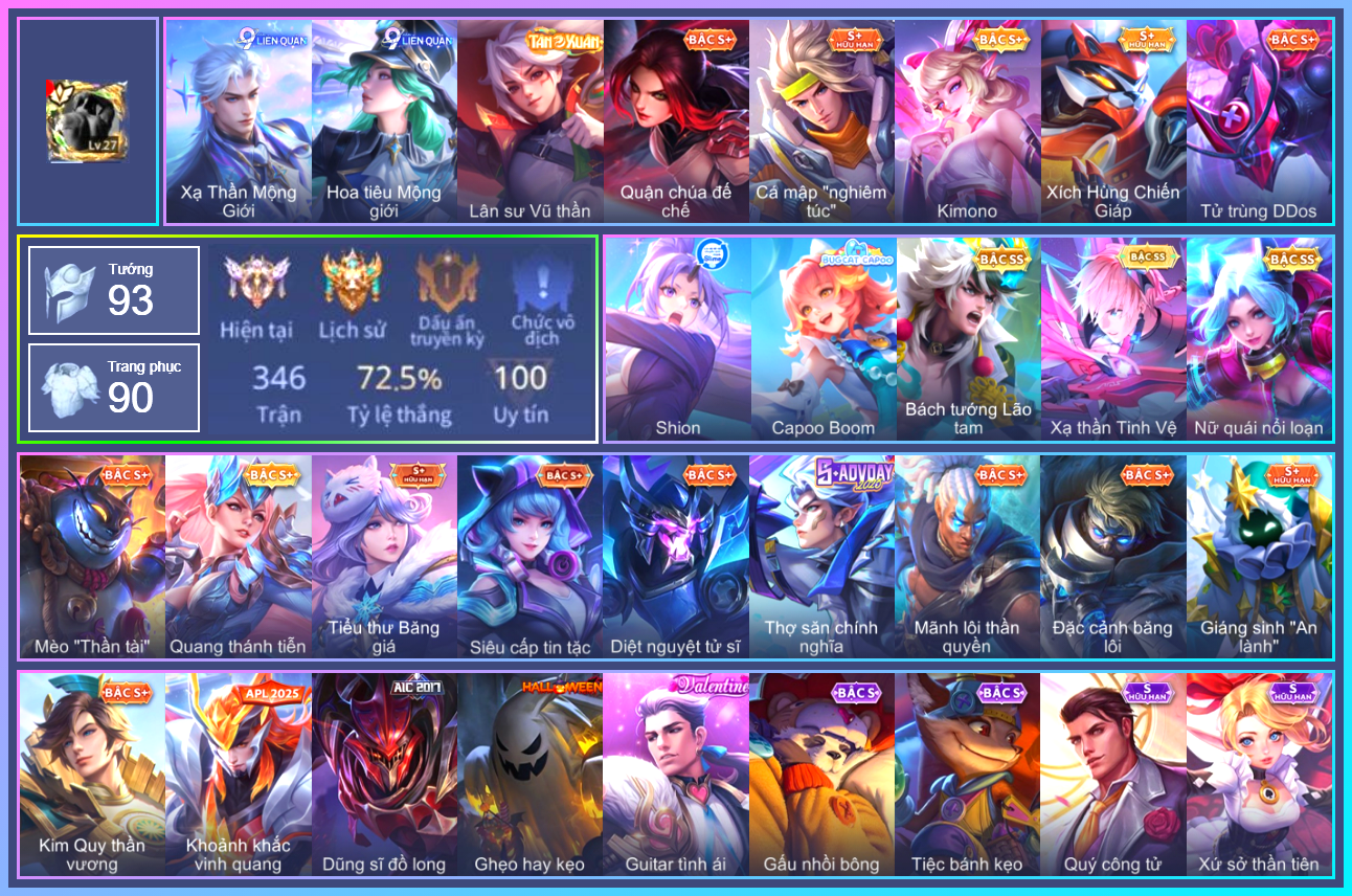 MỤC: MUA ACC LIÊN QUÂN GIÁ RẺ, NHIỀU SKIN S+, SS, SSHH TỪ 500K ĐẾN 1TR