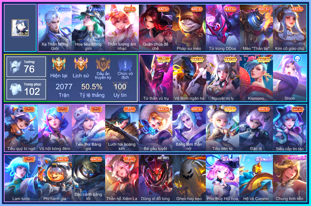 MỤC: MUA ACC LIÊN QUÂN GIÁ RẺ, NHIỀU SKIN S+, SS, SSHH TỪ 500K ĐẾN 1TR